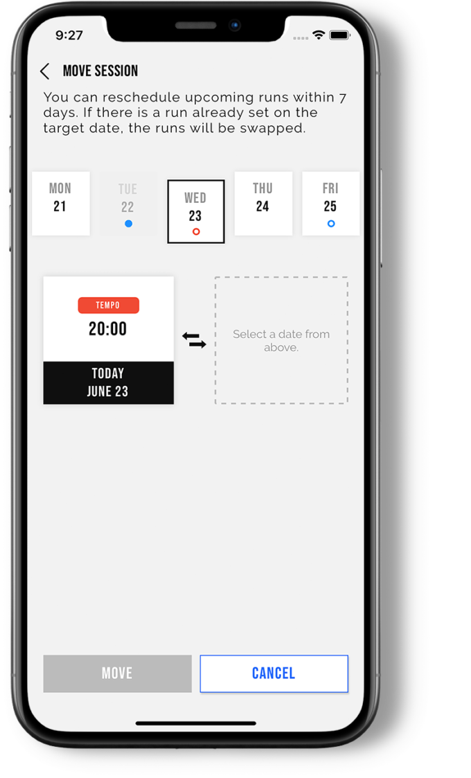 Take control of your running plan. Zoazi is designed to fit around your busy life – training can be easily adjusted week-by-week to suit your changing schedule and running progress.